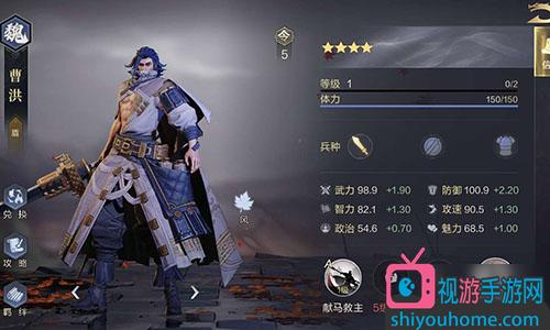 曹洪的星級設定是四星,陣營設定是魏,屬性方面,曹洪的武力、防御、攻速非常的優秀,智力也沒有太低,相當均衡,在前期缺乏優質五星武將的情況下可堪一用。