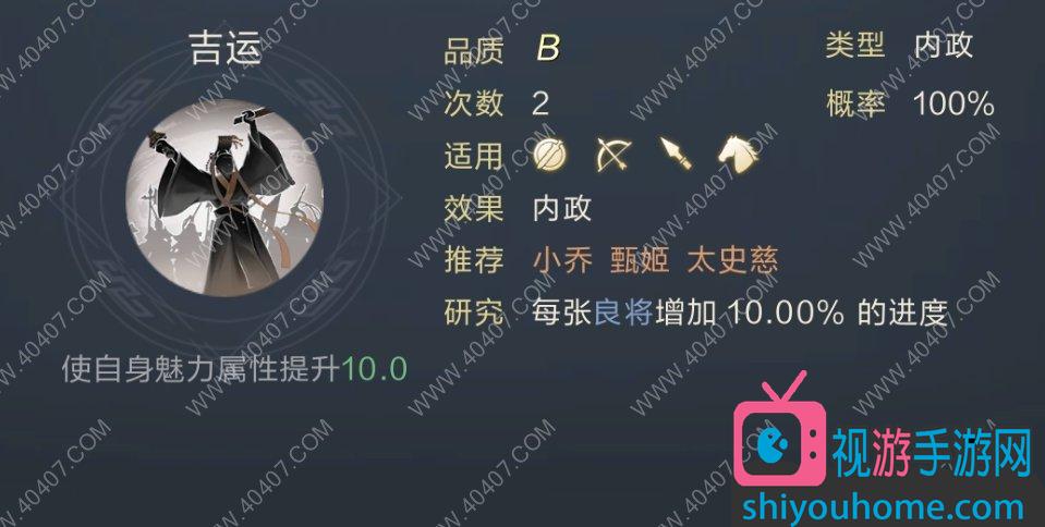 隨機對1名敵方武將造成35%智力傷害,并有50%概率對另1名武將造成35%智力傷害,技能冷卻10秒。