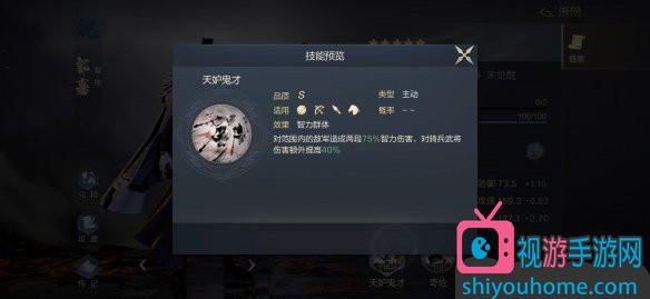 4.郭嘉的主將技是“天妒鬼才”,切合了人物英年早逝的歷史背景。“天妒鬼才”可以對(duì)范圍內(nèi)的敵軍造成兩段75%的智力傷害。“天妒鬼才”最大的亮點(diǎn)是對(duì)騎兵武將傷害額外提高40%,堪稱騎兵殺手。但面對(duì)其他類別武將,表現(xiàn)只能算是中規(guī)中矩。