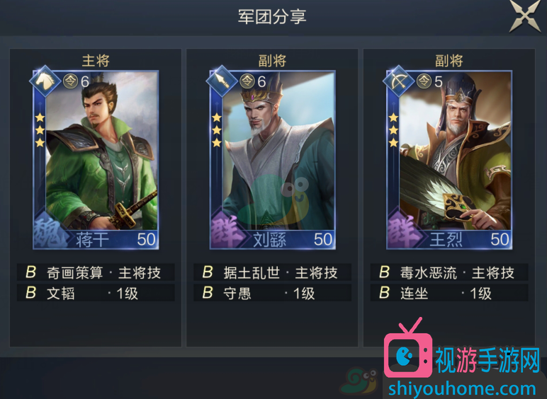新手一開始在缺乏五星橙將的時候,可以將三星良將蔣干作為“智爆隊”核心。蔣干的武技“文韜”可以提高自身的“神算”概率,搭配上三星良將虞翻可以兌換的武技“機變”,又能進一步提高“神算”概率,通過極高“神算”概率,打出不俗智傷輸出。