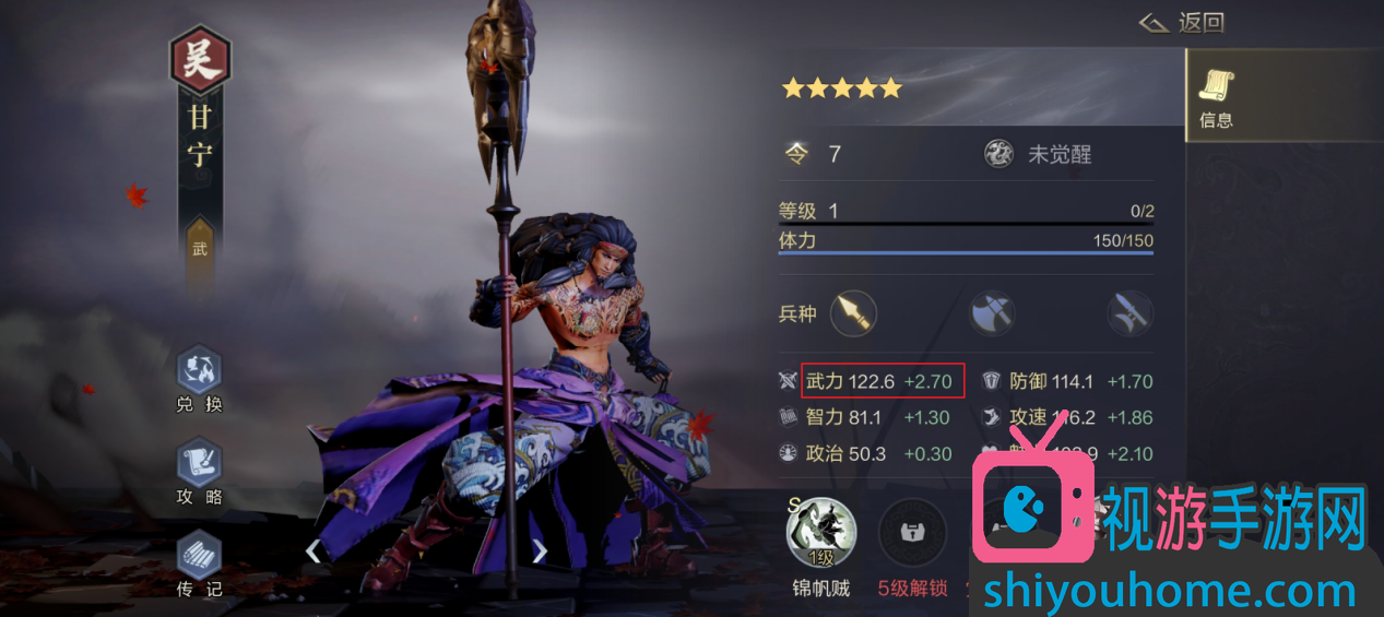 另外水浸陣容可以使用的武將也是非常多的,其中橙色武將甘寧就是不錯的選擇,甘寧的主將技能叫做驚濤駭浪,在下雨天可以對敵人施加水浸效果,武技錦帆賊可以順勢打出高額傷害,另外我們還可以兌換一個推波助瀾,借機對敵人造成更多的輸出哦。