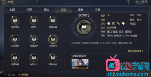 從圖中我們可以知道,以力破巧是針對(duì)敵方智力最高的武將,同樣以五級(jí)地為例,這個(gè)技能就適合處理蔡文姬隊(duì),通過專注目標(biāo)實(shí)現(xiàn)特定點(diǎn)殺,同時(shí)這個(gè)技能還可以給一些弱智隊(duì)伍實(shí)現(xiàn)保駕護(hù)航的效果,強(qiáng)烈推薦。