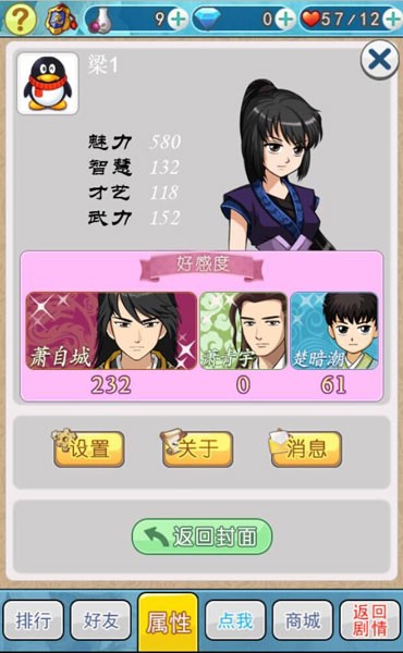 妖妃亂世h5是一款以國產(chǎn)古裝風格的模擬經(jīng)營養(yǎng)成類游戲。從你穿越了之后,飽受了人間疾苦,逐漸成熟,練就一手好廚藝之外,也能生嬌的惹人憐惜,既能溫文爾雅溫柔似水,亦能手擒流氓悍匪,可謂無所不能。你充分發(fā)揮自身的才可以,最后能俘獲他的愛顧嗎?游戲是基于小說改編的同名,在游戲中玩家會有四個屬性,他們會導致魅力價值的增加,畢竟所有的困難,你的魅力可以有多高,期待著每個人都能上國服榜!快來視游手游網(wǎng)一起歷練一下嬌弱的自己吧!
