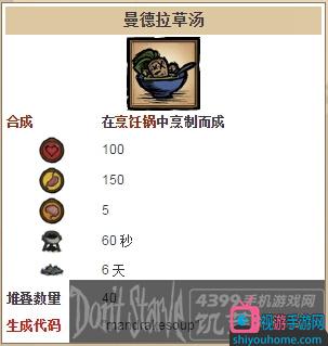 饑荒中的曼德拉草湯看上去非常鬼畜和黑暗,保質期也不長,但是本身回復力強大,如果有大量曼德拉草的話這是個不錯的選擇。在現實中就算有我也不會吃的......