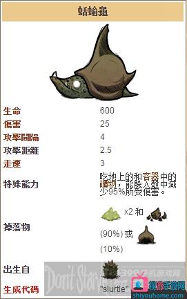 饑荒蛞蝓龜怎么打?蛞蝓龜有什么屬性呢?下面小編給大家?guī)眚因觚斣敿毚蚍ń痤~屬性介紹,感興趣的玩家可以來看看。
