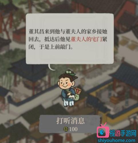 所謂的董夫人的宅門,就是將董夫人隨便入住一個房子,這個房子就會成為董夫人的家,點擊這個房子就可以繼續任務了。