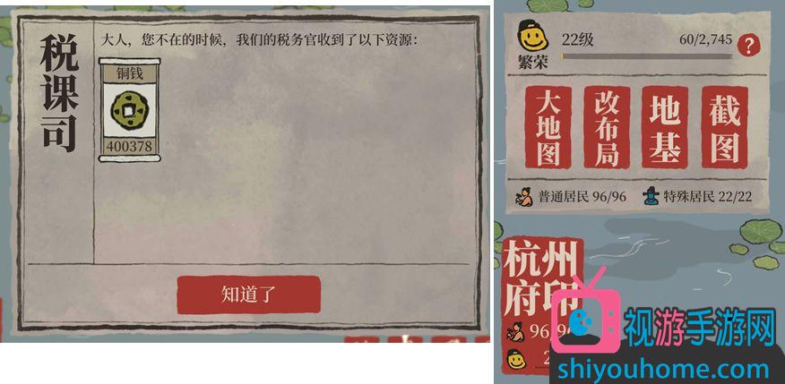 原因:目前樓主杭州府繁榮剛升22級,普通人口96,特殊居民只移居過來22人(還剩兩個空房),杭州基本算布局完成,按第二彈中的布局,商棧全開,加上部分高收益店鋪(人不夠,不能全開),一晚上已經能達到40萬,銅幣上限就500萬,考慮到人數限制,追求更多的店鋪擺放意義不大----并不是你擺了就能賺到,利用上了才是你的錢。