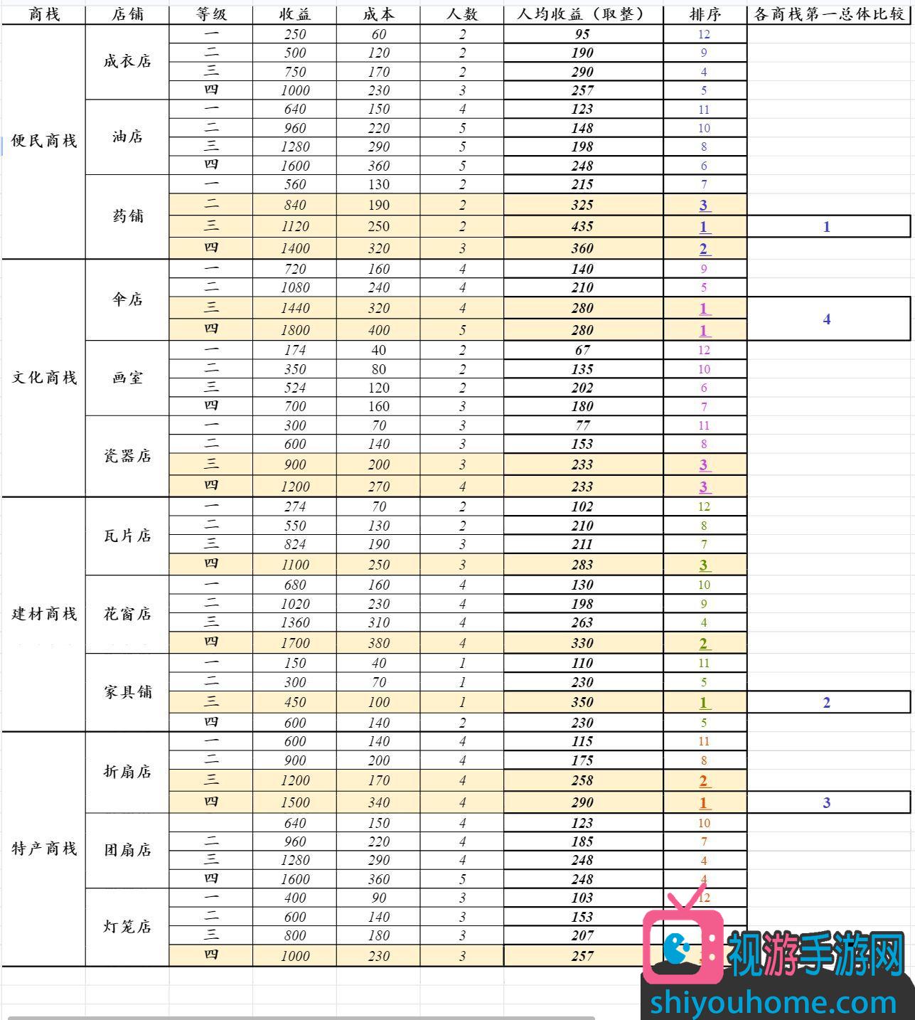 4.商鋪數量選擇為,以保證各商棧單人收益最高的店鋪數量最大為主。
