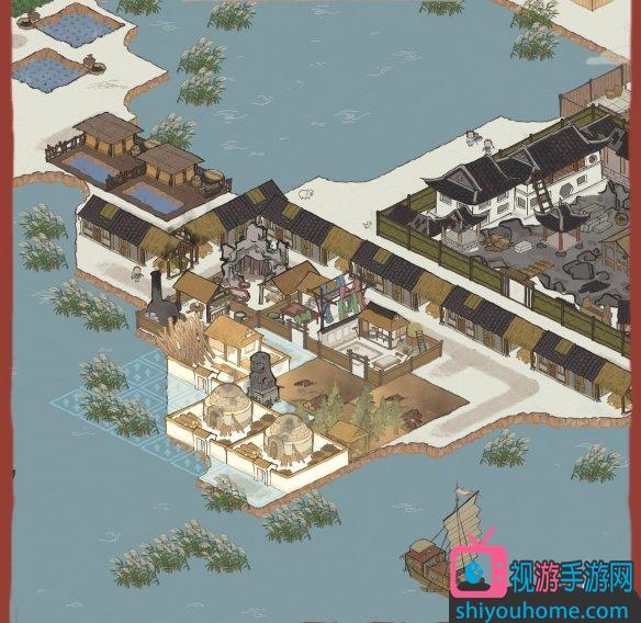 這里從左到右發光的是3養蠶場2絲織坊2繡房,不發光的從上到下4餐館4菱角池。