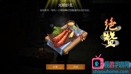 軍師朱劍秋,實是“吃貨”,發明“光明蝦炙”。傳聞此菜一經推出,引起“軍心大動”。天策弟子常暗自捕蝦,李承恩屢令不止。唉!李局也真的好嚴格,就是吃個蝦嘛,吃飽了才有力氣打仗啊!