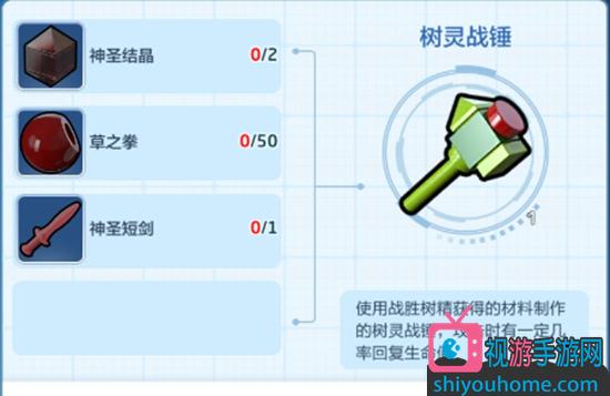 消耗2個神圣結晶,50個草之拳,1個神圣短劍在工作臺--裝備進行合成