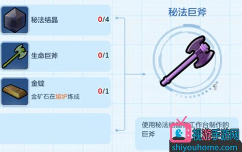 消耗4個秘法結晶,1個生命巨斧,1個金錠。在工作臺--裝備進行合成