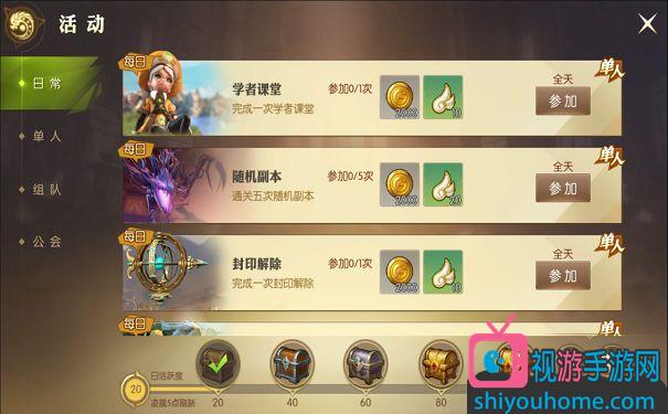 游戲中有著豐富的日常活動副本供玩家挑戰,有些活動低等級就會開放,經驗值非常多。