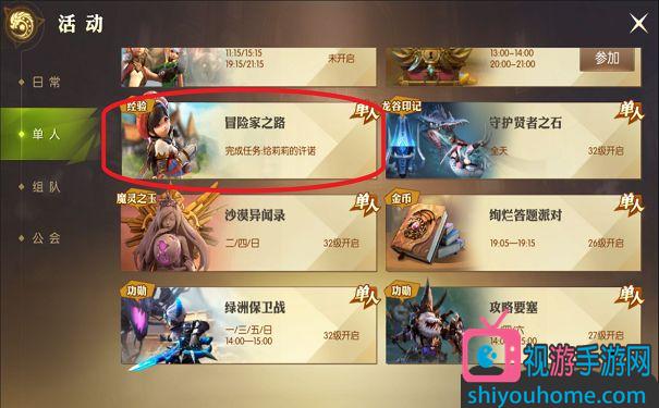 2.冒險家之路,玩家們完成相應的冒險家之路就可以獲取大量的人物經驗,每個只能完成3次哦。