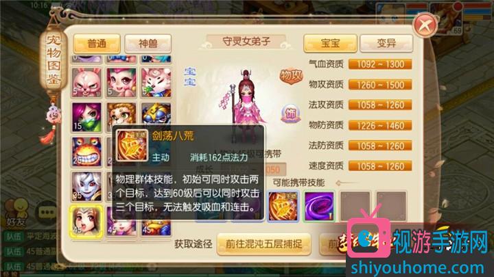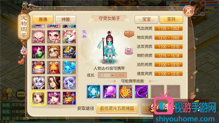 玩家角色等級到45級之后,在混沌五層巡邏能夠直接捕捉野生守靈女弟子,野生的寵物評分為0,資質和成長都很低,需要通過返生來得到寶寶或變異寵物。在混沌五層掛機巡邏的時候,有可能直接捕捉到寶寶,甚至有幾率遇到變異寵物,不過幾率特低。此外,野生守靈女弟子還可以在寵物商店購買,只需要銀子。