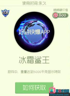 皮膚介紹:冰霜鯊王是一款鈦金版光環(huán),光環(huán)造型像一只被冰封的鯊魚,是傳說中的鯊王,在游戲中重量達到5000千克顯示光環(huán)特效!