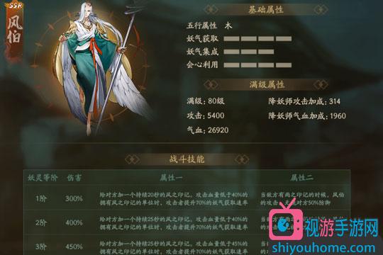 風伯在神都夜行錄中是一個擁有輔助能力的式神,可以對敵方增加印記來提升自己的妖氣獲得速度或者無視對方防御,在超高的加成下搭配一個高傷害的式神效果絕佳!