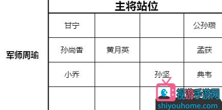 軍師周瑜+孫尚香+甘寧+小喬+黃月英+孫堅+公孫瓚+孟獲+典韋。