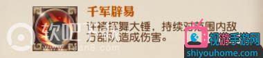 我們先來看到許褚的天賦技能:千軍劈易,在受到攻擊的時候可以生成一個和攻擊傷害等值的護盾,用來抵御下一次的傷害,并且每隔30秒許褚可以對大范圍內的敵人造成可觀的物理傷害,攻擊力越高造成的傷害就越高。