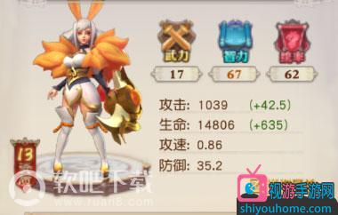 評價:黃月英的玉兔祈舞天賦技能在戰場上可以為我方生命最低的部隊恢復生命,相當于一個奶媽技能,回天之術也一樣,其他技能軍士針對敵方部隊,使對方造成遲緩、降低防御、受到我方部隊20%暴擊的減益效果。