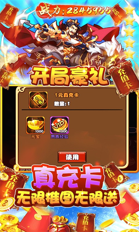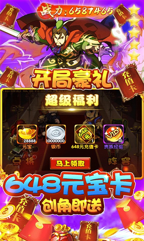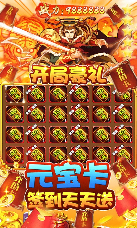 1、上線贈(zèng)送vip3,元寶1888,銀兩88萬(wàn),體力丹5個(gè)