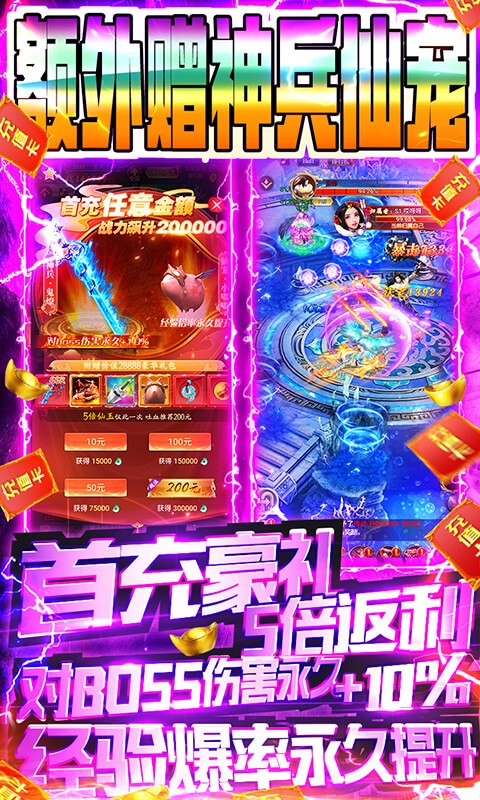 百戰(zhàn)封神滿V版是一款非常好玩而且火爆的多人仙俠競(jìng)技類(lèi)RPG游戲。在百戰(zhàn)封神滿V版安卓版游戲中,玩家將可以和全國(guó)各地的玩家一起在仙俠世界自由探索冒險(xiǎn)。全新的游戲劇情,全新的活動(dòng)內(nèi)容,為你帶來(lái)最新最刺激的手機(jī)游戲,喜歡百戰(zhàn)封神滿V版的玩家不要錯(cuò)過(guò),現(xiàn)在就開(kāi)始下載一起體驗(yàn)吧!百戰(zhàn)封神滿V版是一款大型聯(lián)網(wǎng)3D玄幻修仙競(jìng)技手游。百戰(zhàn)封神滿V版采用流暢的即時(shí)戰(zhàn)斗模式,讓玩家可以獲得大型MMORPG的游戲體驗(yàn)。游戲簡(jiǎn)單的操作和游戲前期大量的新手引導(dǎo),讓玩家可以更快速地上手游戲操作、熟悉游戲各項(xiàng)功能及玩法。
