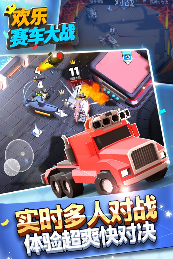 歡樂賽車大戰(zhàn)是一款精美3D像素畫風(fēng)的賽車游戲。在這里,你可以享受實(shí)時(shí)多人作戰(zhàn)的樂趣。搜集地圖上的任意道具,催毀對(duì)手并搶走她們的皇冠,掌控賽場(chǎng)在超級(jí)跑車撞擊的對(duì)戰(zhàn)中變成新的王者英雄!清新亮麗的畫面場(chǎng)景,輕快悅耳的背景音樂,加上實(shí)時(shí)競(jìng)技優(yōu)秀操作手感,讓玩家愛不釋手。游戲擁有上百輛賽車等你收集,各種奇怪的玩法,讓玩家眼花繚亂。同時(shí)還有30多中精制皮膚,隨意制造專屬個(gè)性化戰(zhàn)車,風(fēng)騷跑位,秀出自己的風(fēng)采。五花八門的配搭,享受最簡(jiǎn)單純粹的游戲樂趣.更有8個(gè)不同的地圖場(chǎng)景和許多隱藏的賽車道具等待你來探索,收獲更多意外驚喜!簡(jiǎn)單有趣的玩法,非常容易上手,是你碎片時(shí)光休閑放松的最佳之選!更有全新房間模式華麗開啟,玩家可以邀請(qǐng)好友一較高下,體驗(yàn)真人即時(shí)對(duì)戰(zhàn)的熱血快感!也可以匹配隊(duì)友,隨時(shí)隨地與國(guó)服玩家展開熱血沸騰的PK。獨(dú)特的繪畫風(fēng)格帶給你不同的游戲體驗(yàn)。只需兩分鐘即可玩上一局,不管是上班族還是學(xué)生黨都可以隨時(shí)隨地開始游戲,在課堂時(shí)間里也能享受歡快樂趣!這里不僅有最激爽的賽車競(jìng)技,還有神秘豐富的彩蛋內(nèi)容哦,快來游戲中制霸賽場(chǎng)吧!視游手游網(wǎng)帶來歡樂賽車大戰(zhàn)最新手機(jī)版游戲安卓手游免費(fèi)下載安裝!喜歡就來下載吧!