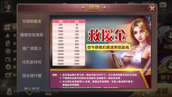 活動 每日累充---即時發(fā)放活動時間:2020.8.3 00:00 - 2020.8.6 23:59領(lǐng)取規(guī)則:以單日充值最高金額為準(zhǔn),高檔位可以領(lǐng)取低檔位(可疊加)例如:單日累計(jì)充值10000元可領(lǐng)取所有檔位的獎勵,充值活動重置,如單日充值...;[詳情]