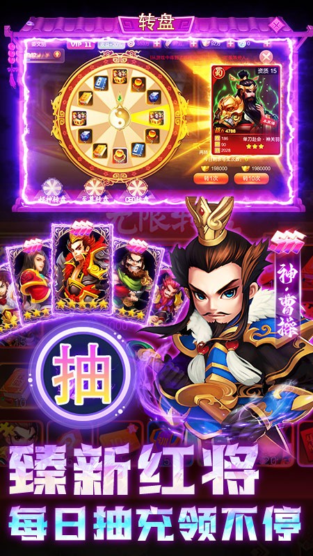 3.上百個的三國武將,豐富的組合搭配,讓你的練級道路不再孤單。