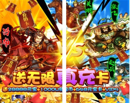 1、上線贈送vip3,元寶1888,銀兩88萬,體力丹5個