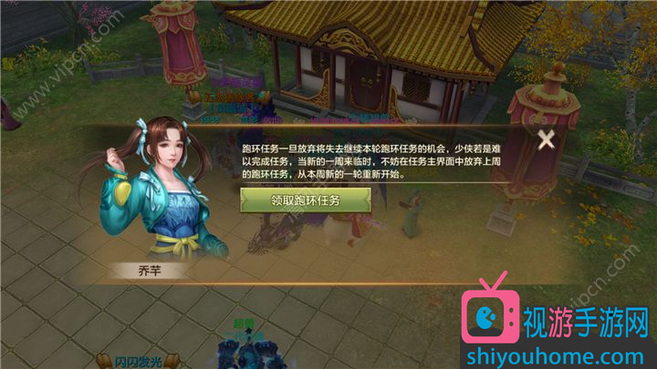 在洛陽接取跑環任務的喬芊身邊,多出了一個提供快捷跑環的NPC蘇來環。