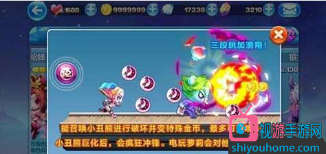 這是電玩蘿莉的技能展示特殊效果,電玩蘿莉可以扔炸彈,并且以小丑熊做的打分頭等大事。