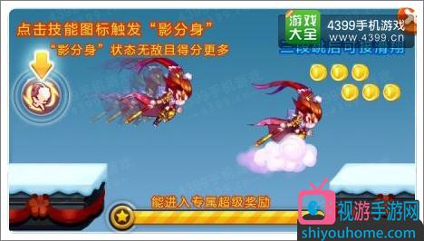影分身后進入無敵狀態且得分更多;專屬超級獎勵:大鬧天宮