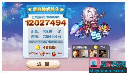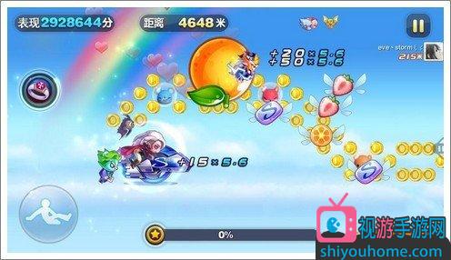 這個組合已經非常強大了,最主要還是玩家在游戲中無限進行2段跳,炫動戰車噴射出的高分水果就能夠增加中的能量。