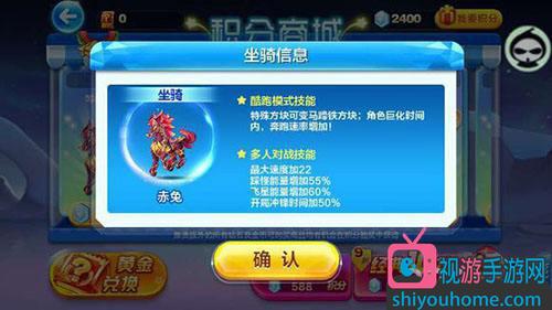 赤兔這款坐騎的技能主要有兩方面,一方面是可以將特殊方塊可變馬蹄鐵方塊。也就是說在游戲中,那些頭上有點綠的星星方塊,會被變成馬蹄鐵方塊,然后只要踩到了,就會飛出高分的馬蹄鐵飛幣~!所以這款坐騎其實也是關于飛星得分的一款坐騎,小伙伴們可以搭配比較百搭類型的,或者是飛星得分比較高的人物喲~比如說女警小兔、赤兔等角色都是可以的。