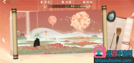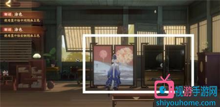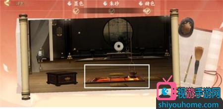 1:(用赭色/朱砂)顏色給右側(cè)屏風(fēng)上色