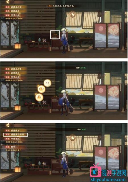 二:來到這里.和碗互動.放進(jìn)朱砂石我們就獲得了朱砂顏料
