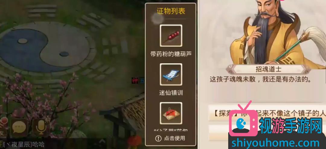 10之后我們再次點擊出現的對話。然后我們去找招魂道士,使用帶藥粉的糖葫蘆,再次點擊招魂道士,招魂小童。然后我們去找小童,得到小童魂魄的證詞。