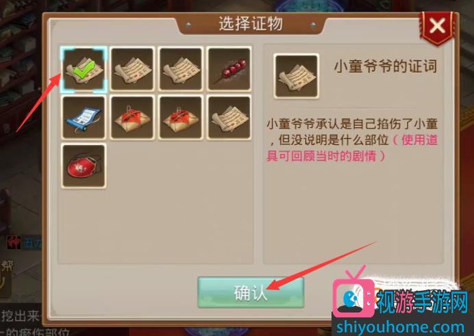 先點擊“小童爺爺的證詞”,再點擊確認。