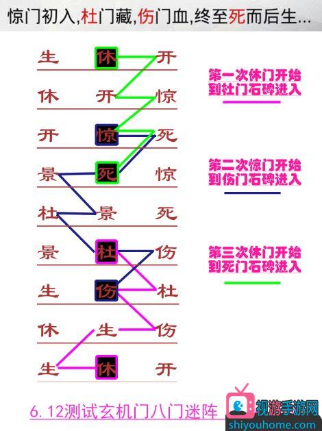 石碑提示:驚門初入,杜門藏,傷門血,終至死而后生。