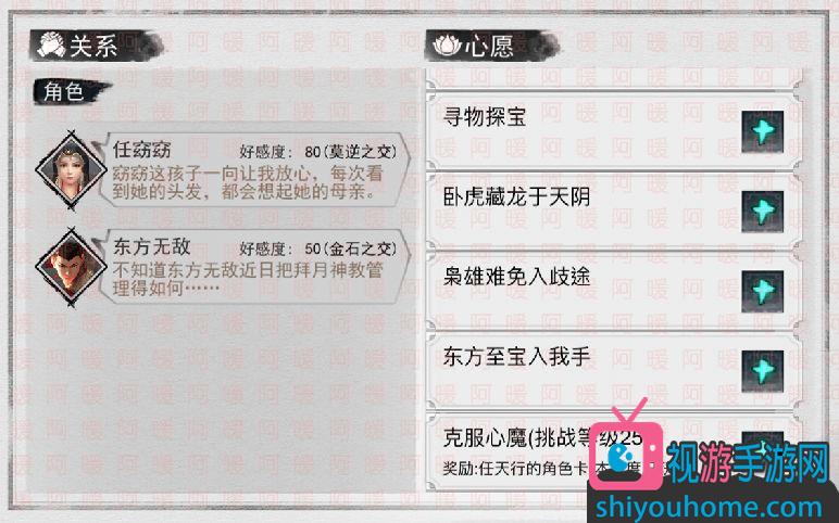 對(duì)話后去找任天行對(duì)話,對(duì)話后觸發(fā)戰(zhàn)斗。撐過3回合后自動(dòng)勝利,戰(zhàn)斗結(jié)束后,完成【臥虎藏龍于天陰】的心愿任務(wù)。