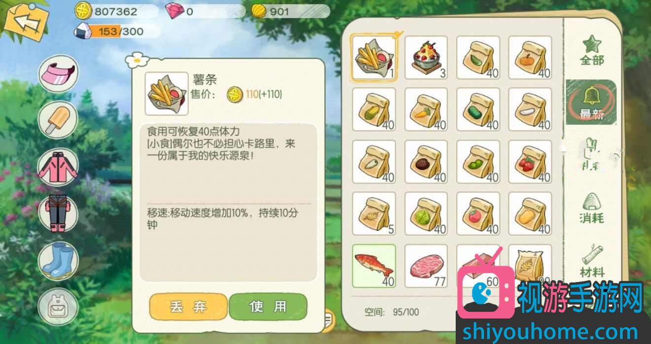 【薯條】體力恢復40點,移動速度提升10%;