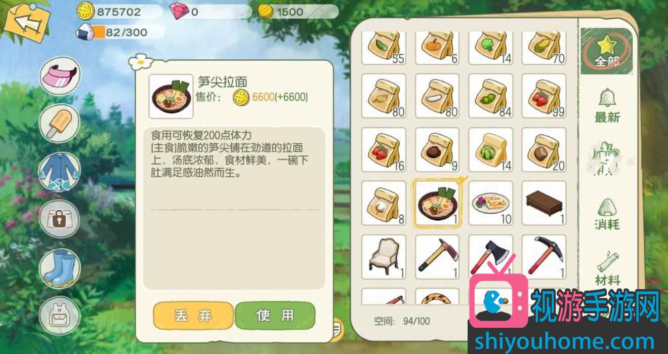 【筍尖拉面】體力恢復200點;