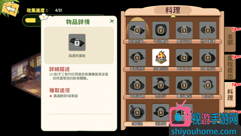 (2)圖紙解鎖方法:需要先將廚房升級到一級才能制作高湯煎蛋卷,并且需要購買到高湯煎蛋卷圖紙。