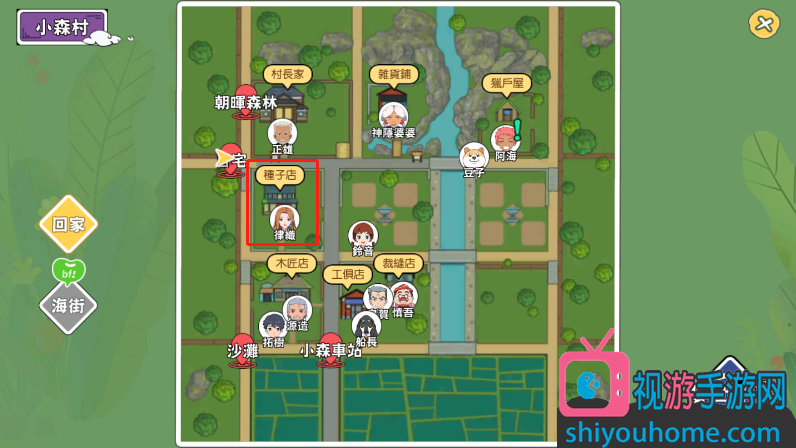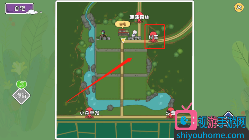 1、玩家可以先進入到自家的“自宅”中,然后打開右上角位置的“小地圖”,點擊地圖邊邊的“小森村”即可進入村莊。