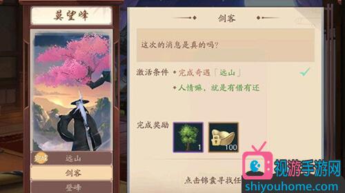 在隱市里面,玩家可以使用這個(gè)同心佩,然后兌換俠客的信物,大概兌換500個(gè)同心佩,就可以順利的觸發(fā)這個(gè)劍客奇遇。