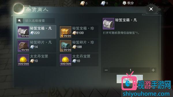 PS:平民玩家可以優先兌換太玄丹,也就是秘籍升級和進階物品,在培養好后再兌換整本秘籍,不要的秘籍最好兌換成積分,這樣可以反復兌換到自己想要的秘籍。珍積分存著,可以兌換成自己想要的高級秘籍。