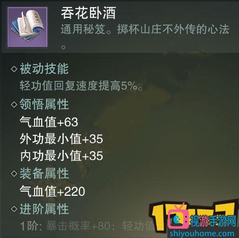 一夢江湖吞花臥酒怎么樣?一夢江湖吞花臥酒好不好用呢?下面一起隨小編來看看這個秘籍的詳細屬性介紹吧!