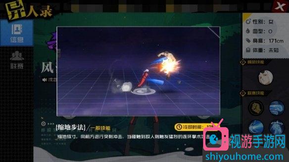 縮地成寸,從技能的名字上就可以看出,縮地成寸可以讓異人快速向前突進一段距離,當擊中敵人后可以將敵人浮空,并補上一套拳法傷害。因為其技能釋放速度較快,突襲效果較強,常用作先手攻擊。