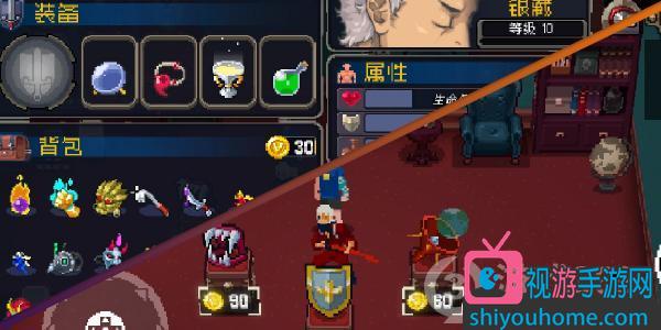 英雄同時最多可以裝備四個道具,多余道具可以儲存在背包中,在非戰斗狀態期間可隨時替換。道具最常見的獲取方式就是在每一層都有的商店里購買。